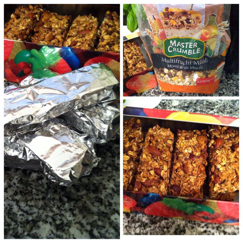 Deu-me 27 barras como as das fotos, para quando a fome aperta, ando sempre com uma barrinha na mala, e bem fechadas aguentam 15 dias estaladiças e crocantes, que eu não gosto de barritas moles. Não aguentam mais porque se comem todas.